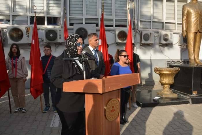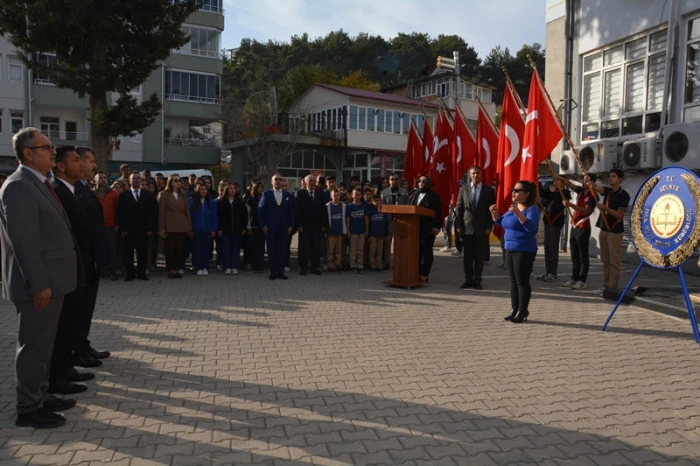 İlçe Milli Eğitim Müdürlüğü tarafından Hükümet Konağı önünde organize edilen resmi tören, saat09:30’da gerçekleşti. Törende, eğitim camiasını temsilen İlçe Milli Eğitim Müdürü Hüseyin Kadim tarafından Atatürk Anıtı'na çelenk sunuldu.