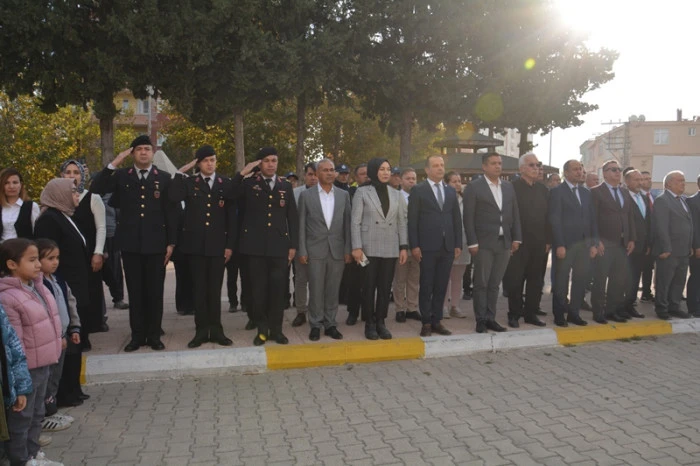 Çelenk koyma töreninin tamamlanmasının hemen ardından, tüm katılımcılar tarafından saygı duruşunda bulunuldu. Ardından, Türkiye Cumhuriyeti'nin bağımsızlık sembolü olan İstiklal Marşı coşkuyla okundu. Marşın okunmasıyla birlikte bayrak göndere çekildi ve resmi programın başlangıcı yapıldı. Programa Belediye Başkan Vekili Rasim Taşçı,İlçe Milli Eğitim Müdürü Hüseyin Kadim, Siyasi Parti İlçe Başkanları ,Kurum Müdürleri katıldı