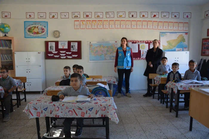 Gülnar Belediyesi İklim Değişikliği ve Sıfır Atık Müdürü Aşkın Toka ile Sıfır Atık personeli Zeynep Kından, Şeyhömer İlkokulu ve Bereket Mahallesi Cihangir Can İlkokulu’nda öğrencilerle bir araya gelerek “Sıfır Atık” eğitimi verdi.