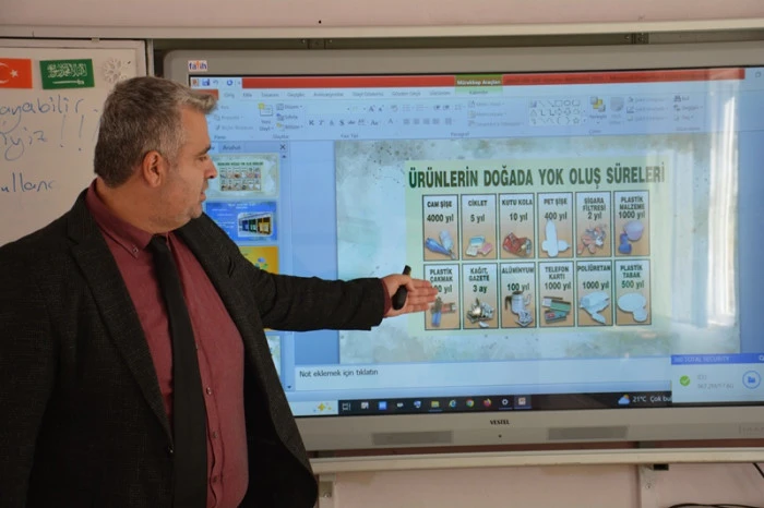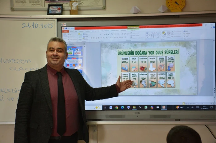 Müdür Aşkın Toka, sunumunda Sıfır Atık felsefesinin temellerini, atıkların kaynağında ayrıştırılmasının önemini ve gri su uygulaması gibi su tasarrufu yöntemlerini detaylı bir slayt gösterimiyle anlattı. Toka, israfın önlenmesi ve geri dönüşümün doğal kaynakların korunmasındaki hayati rolüne dikkat çekti.