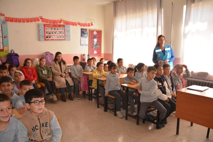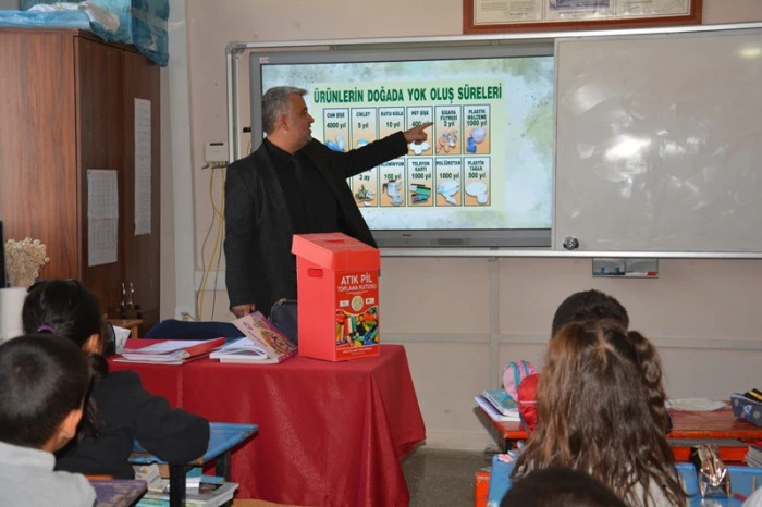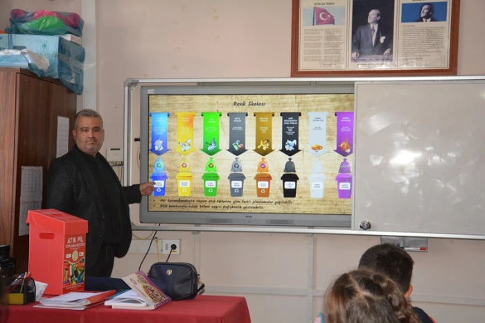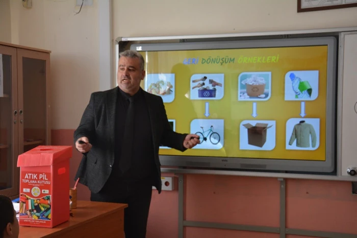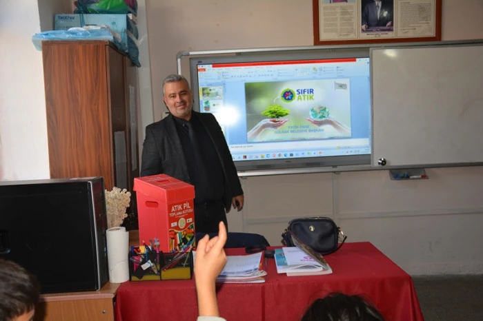 Eğitimde, İklim Değişikliği ve Sıfır Atık Müdürü Aşkın Toka ve Sıfır Atık Personeli Zeynep Kından, öğrencilere "Sıfır Atık nedir?" ve "Geri Dönüşüm nedir?" gibi temel konular hakkında detaylı açıklamalar yaptı. Sunumda, atıkların kaynağında ayrılması, israfın önlenmesi, yeniden kullanma ve geri dönüşümün önemi, doğal kaynakların korunması ve iklim değişikliğiyle mücadeledeki rolü basit ve anlaşılır bir dille anlatıldı. Öğrencilerin merak ettiği soruları da yanıtlayan yetkililer, çevreye duyarlı bir yaşam tarzının küçük yaşlardan itibaren benimsenmesinin önemini vurguladı.
