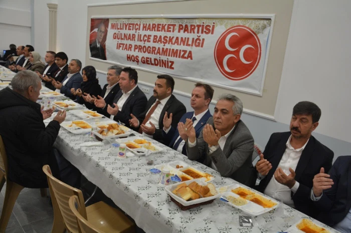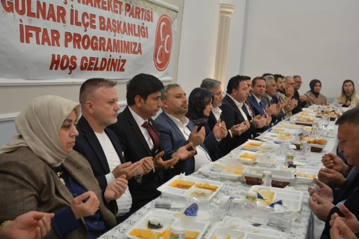 | Milliyetçi Hareket Partisi (MHP) Gülnar İlçe Başkanlığı, Ramazan ayının manevi iklimini düzenlenen geniş kapsamlı bir iftar programıyla taçlandırdı. Bir düğün salonunda gerçekleştirilen organizasyona, siyaset dünyasından ve sivil toplum kuruluşlarından çok sayıda isim katıldı.