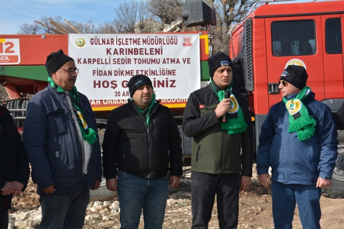 Toplam 30 hektarlık alanda gerçekleştirilen çalışmalar kapsamında 26.000 adet sedir fidanı toprakla buluşturuldu, ayrıca 1.500 kilogram karpelli sedir tohumu ekimi yapıldı. Fidan dikilerek ve tohum ekilerek 2025 yılının kapatılması, çevreye ve gelecek nesillere karşı duyulan sorumluluğun en somut göstergelerinden biri olarak değerlendirildi.